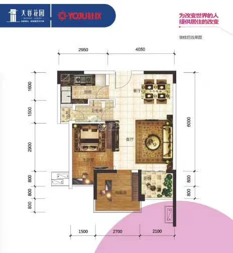2室2厅 / 53平米