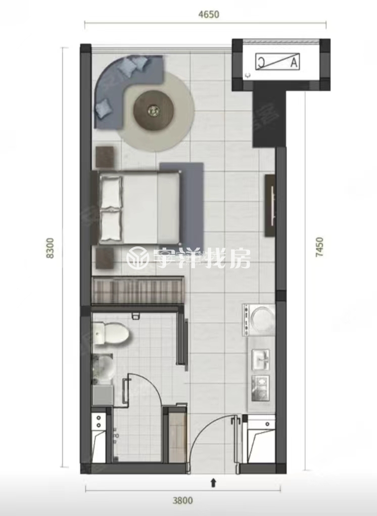 1室1厅 / 74平米